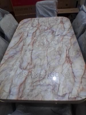 Table à manger 6 chaises, en marbre avec motif gris marron