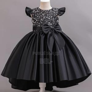 Magnifique robe de princesse pour petite fille Robe élégante avec haut en paillettes scintillantes, manches volantées et grand nœud à la taille. Parfaite pour anniversaire, mariage et fêtes.