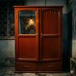 Dressing en bois rouge a deux porte et un miroir sur une de porte