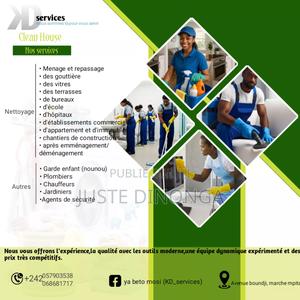 Aspiration, Balayage, Dépoussiérage, Lavage des murs, Lavage sous pression, Nettoyage après le travail, Nettoyage de l'air, Nettoyage des appareils de cuisine, Nettoyage des armoires intérieures, Nettoyage des fenêtres, Nettoyage des gouttières, Nettoyage des toits, Nettoyage Tapis, Réintégration du mobilier, Services de blanchisserie et de nettoyage à sec, Suppression des mousses