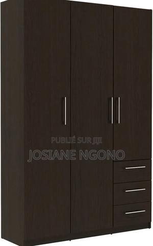 Garde robe couleur marron, longueur 3 portes, 3 tiroirs