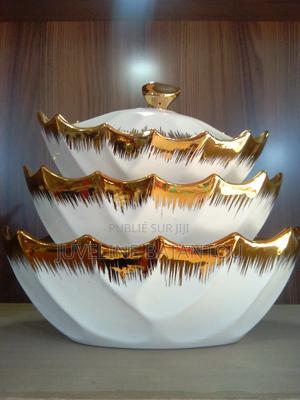 Magnifique set de vaisselle design moderne blanc avec finition dorée. Disponible à Pointe-Noire Contact direct pour livraison ou retrait
