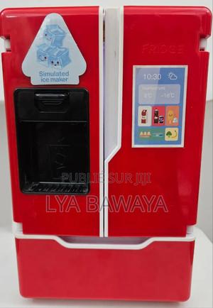 Réfrigérateur jouet pour enfants, comporte un distributeur d'eau ou de glaçons simulé sur la porte. Doté de fonctions lumineuses et sonores, prix : 20.000fr Brazzaville.