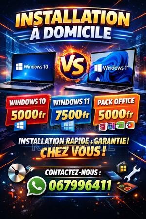 Installation windows 10 Passage de windows 10 au 11 Installation pack Office complet N.B: Livraison payante juste pour des longues distances.