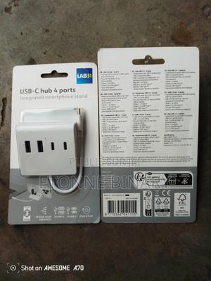 Caractéristiques : Ports : 4 ports USB – connecte clavier, souris, clé USB, disque dur, etc. Compatibilité : Parfait pour MacBook, Android, Windows, tablettes et plus Fonction : Transfert de données rapide + recharge possible Support intégré : Sert aussi de support smartphone – pratique pour les appels vidéo ou le streaming Design : Compact, solide, disponible en noir ou blanc Câble USB-C intégré – prêt à l’emploi