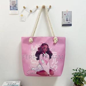 Sacs à bandoulière en toile de coton de grande capacité avec poignée en corde, impression d'art de fille noire Africaine à motifs personnalisé de haut qualité