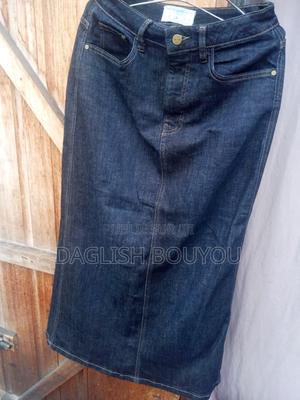 Jupe jeans avec fente au milieu, à côté et derrière