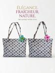 Sac à main blanc élégant avec motif monogramme et jolie fleur décorative sur le côté. Léger,...