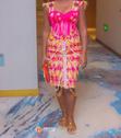 Robe en raphia avec corset rose fuschia et perlage