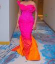 Robe en Kente Rose Fushia Orange Avec Traîne Et Accessoire